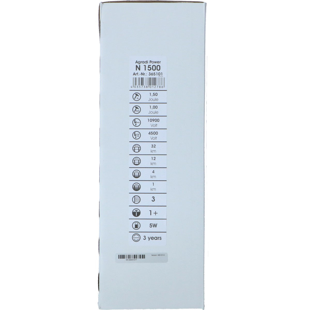 Der N1500 verfügt über eine Anzahl von 3 Netzen und einem Erdungsstab. Die Ladeenergie bei 500 Ohm beträgt 4.500V, sodass Sie auch bei schwierigen Bedingungen optimal geschützt sind.