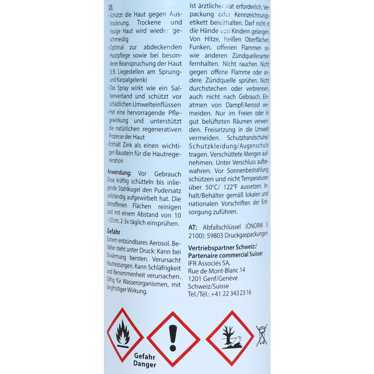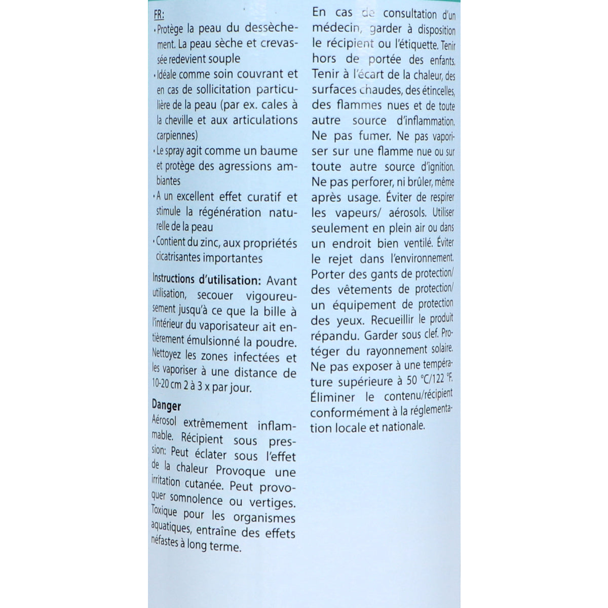 Dieses Spray fördert die natürliche Hautregeneration und wirkt wie eine schützende Salbe. Die elastisch bleibende Haut wird optimal gepflegt und geschützt.
