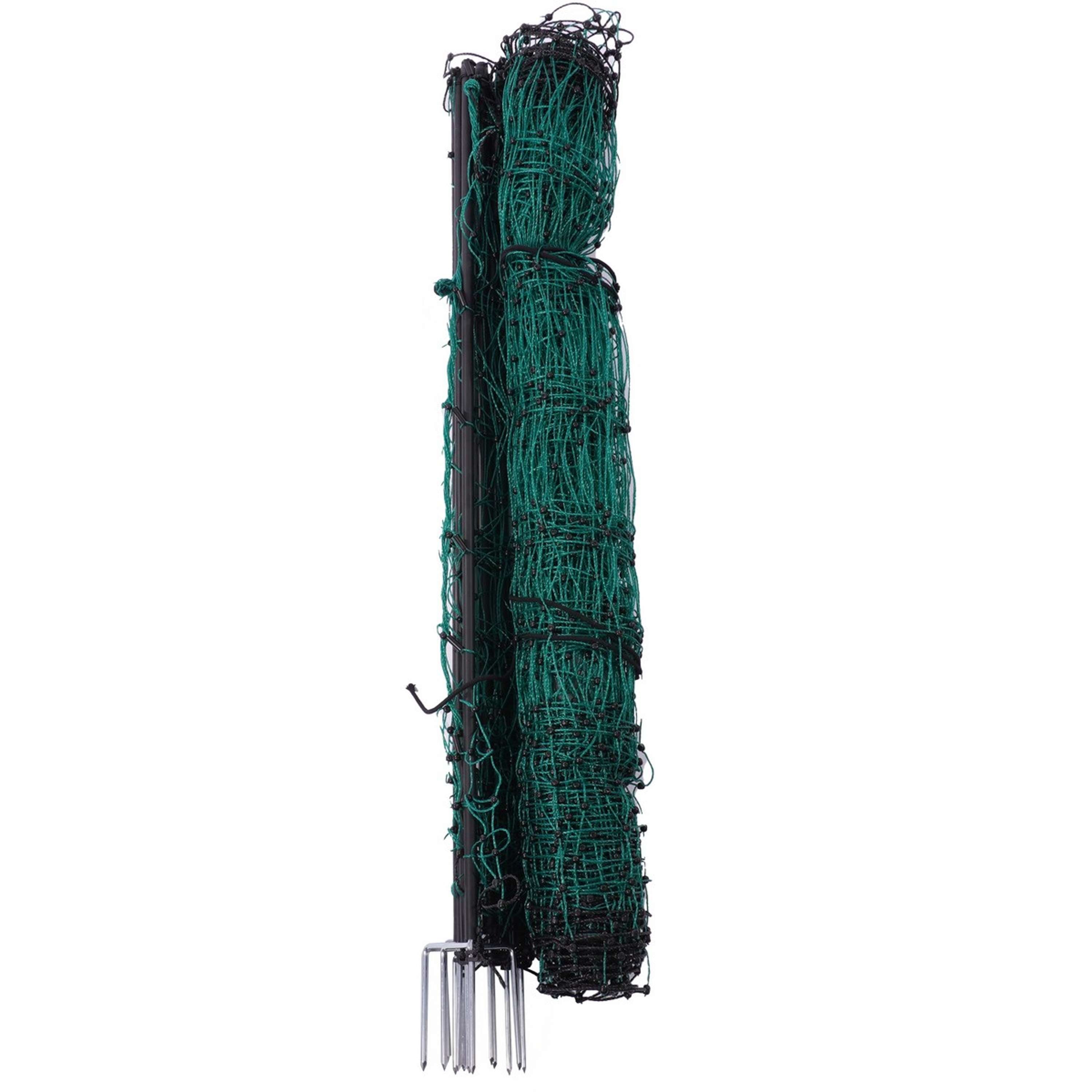 Dieses Netz besteht aus widerstandsfähigen Kunststoffpfosten, die mit verzinkten Bodenspitzen ausgestattet sind. So bleibt es stabil und widersteht den täglichen Herausforderungen auf deinem Hof.