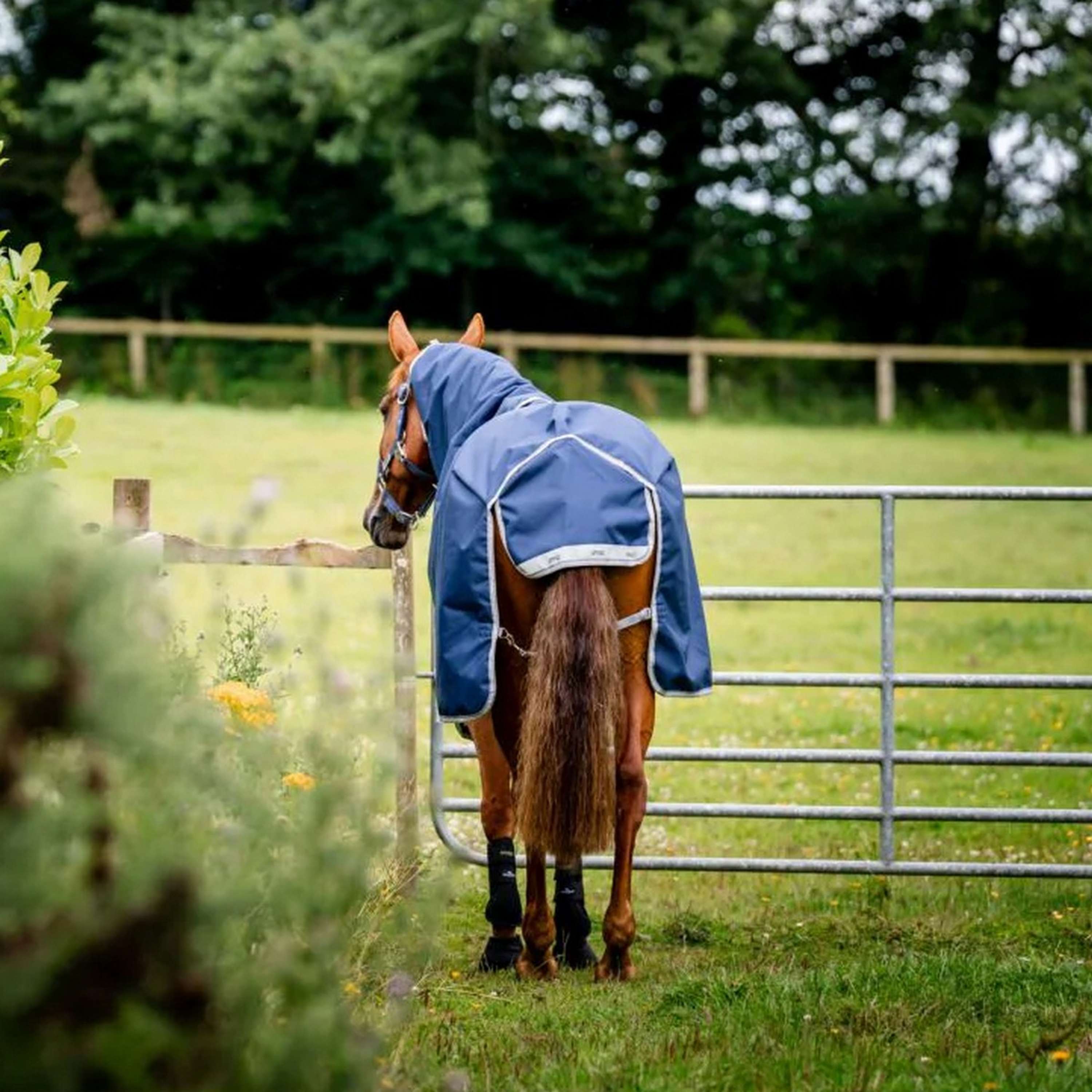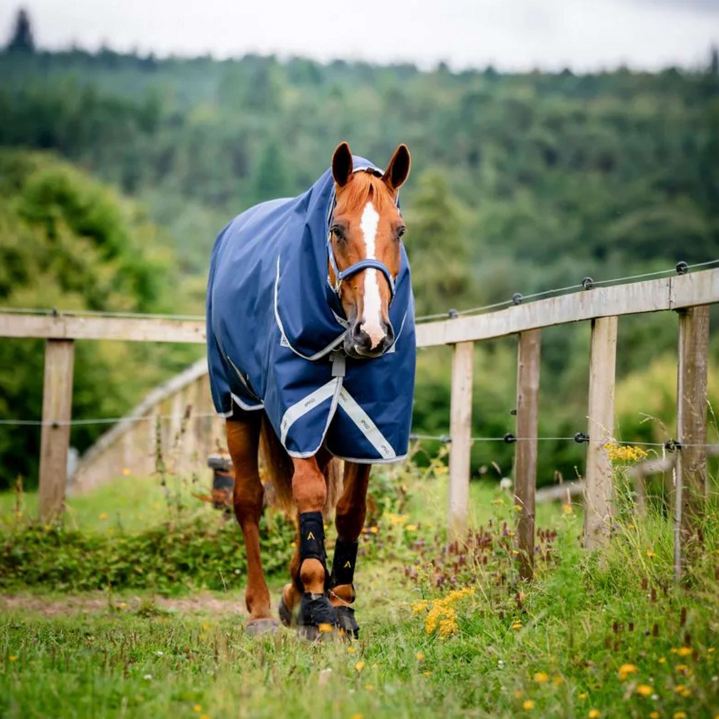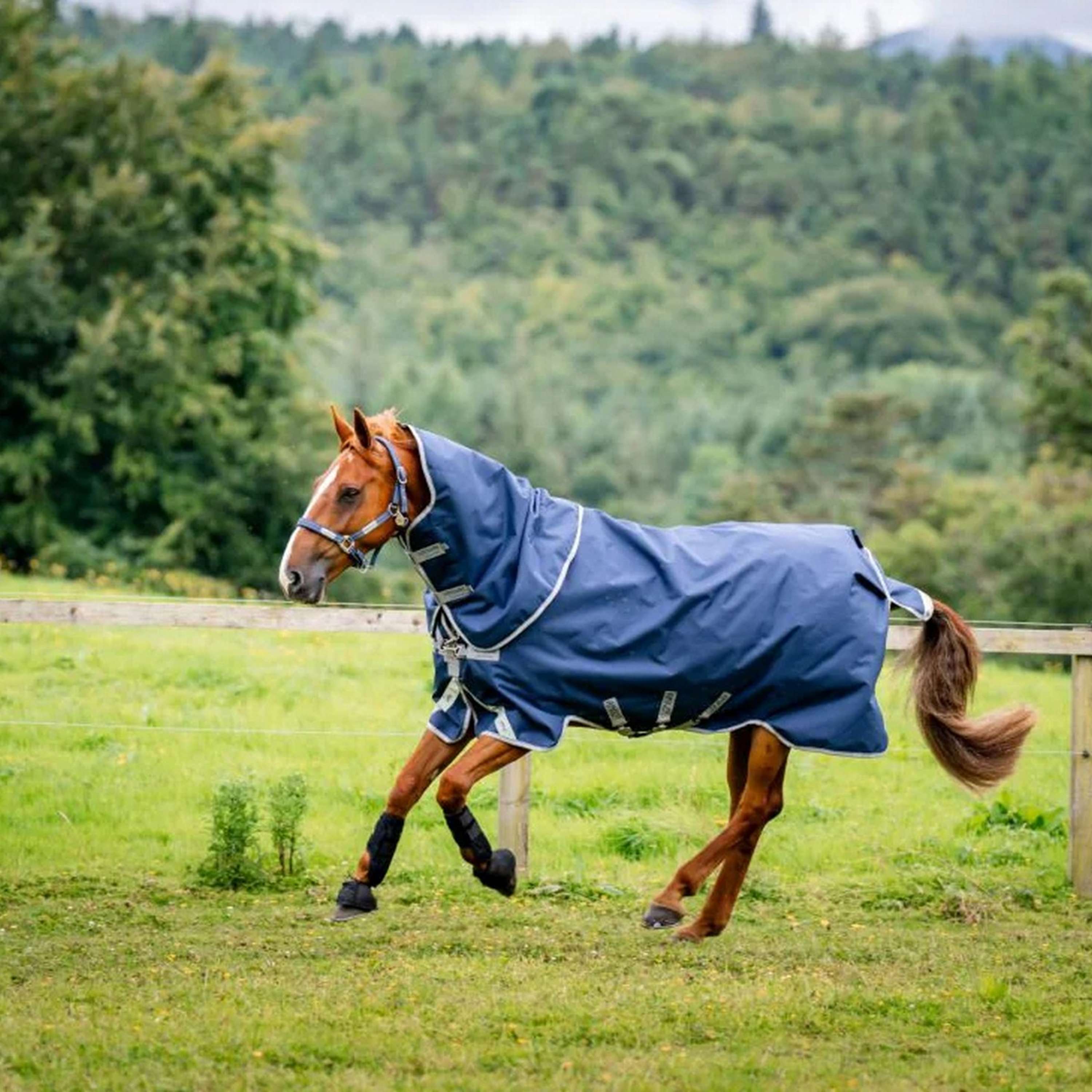 Ausgestattet mit einem V-Front-Verschluss, der den Druck auf die Schulter eliminiert und mehr Komfort beim Grasen ermöglicht. Inklusive abnehmbarer Kapuze, die ultimative Vielseitigkeit bietet. Doppelte Beinbögen, um die Bewegungsfreiheit zu erhalten und gleichzeitig zu ermöglichen, dass die Decke sicher unter dem Bauch bleibt. Reflektierende Streifen für erhöhte Sichtbarkeit und 3 gekreuzte Gurte.