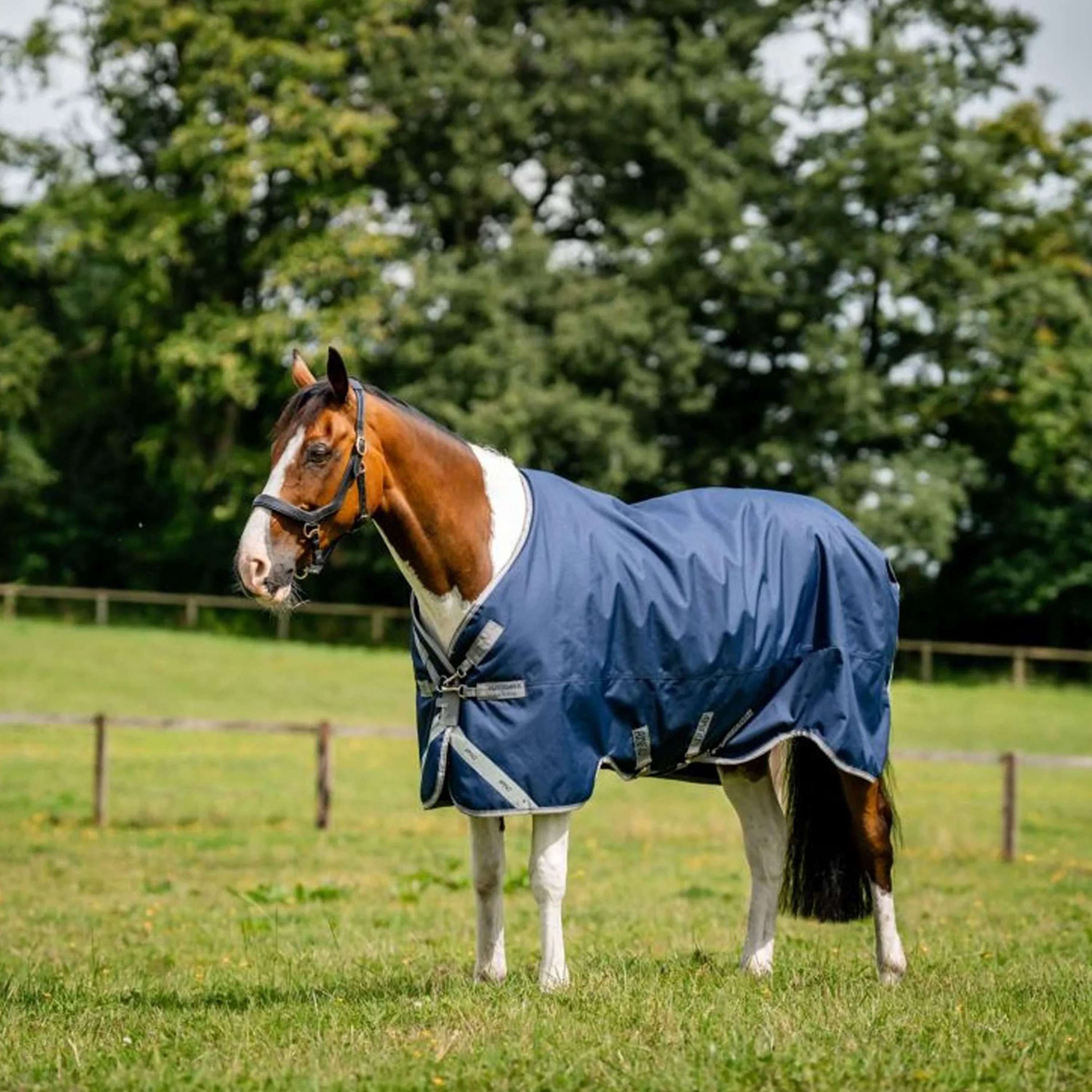 Ausgestattet mit einem V-Front-Verschluss, der den Druck auf die Schulter eliminiert und mehr Komfort beim Grasen ermöglicht. Kompatibel mit dem Horseware® XL Innenfuttersystem und den abnehmbaren Amigo® XL Turnout-Kapuzen, die zahlreiche Auswahlmöglichkeiten und Flexibilität bieten. Doppelte Beinbögen, um die Bewegungsfreiheit zu erhalten und gleichzeitig zu ermöglichen, dass die Decke sicher unter dem Bauch bleibt. Reflektierende Streifen für erhöhte Sichtbarkeit und 2 Gurte.