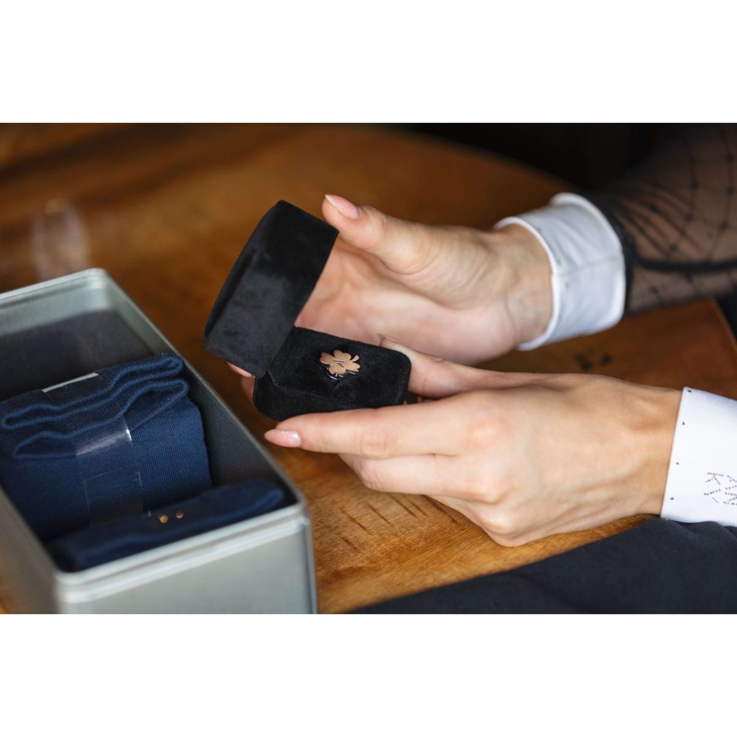Surprise your loved ones or yourself with this beautiful gift box with socks and a lucky charm! The socks are particularly comfortable. They are lightweight and fit perfectly thanks to the stretch material. The socks wick away moisture and are quick-drying for a comfortable feel while wearing. The contrasting stripe of silver glitter material completes the socks.