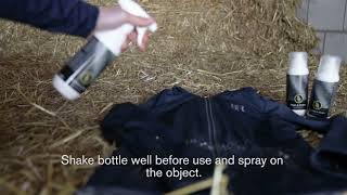 Nicht nur für Kleidung geeignet: Du kannst das Spray auch auf deinen Pferdedecken verwenden. Bevor du es anwendest, solltest du den Stoff gründlich waschen oder reinigen, um die beste Haftung zu gewährleisten. So einfach ist es!