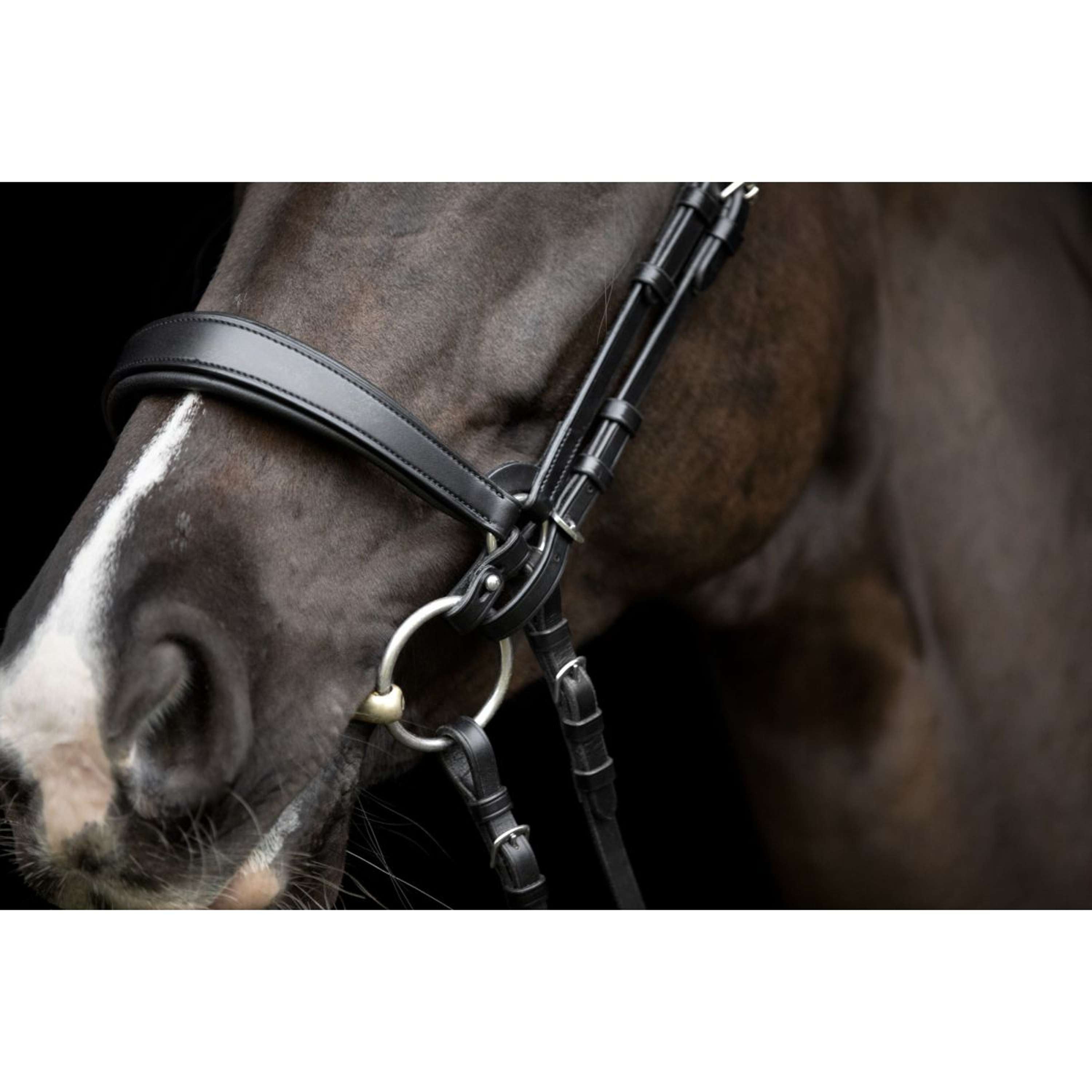 Hebt die Trense vom Kiefergelenk ab, was die Balance und Beweglichkeit des Pferdes bis zur Hinterhand verbessert.