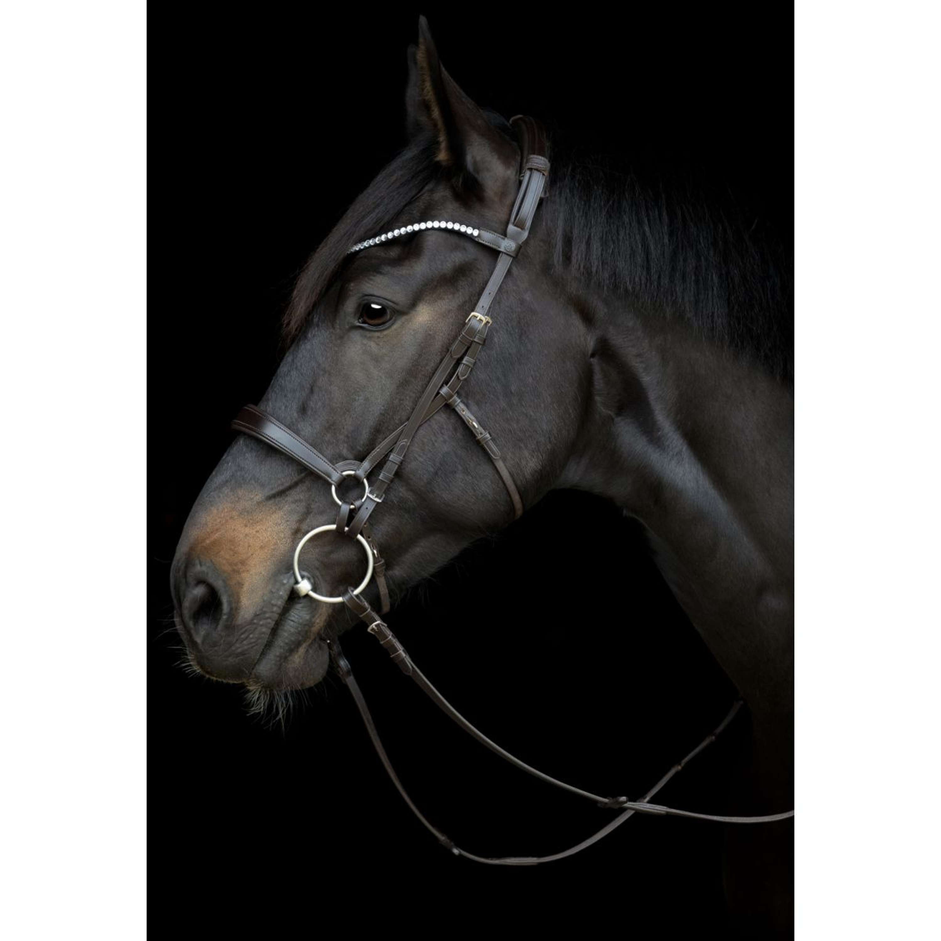 Trense mit Doppelzügeln (Nasenriemen und Gebiss)