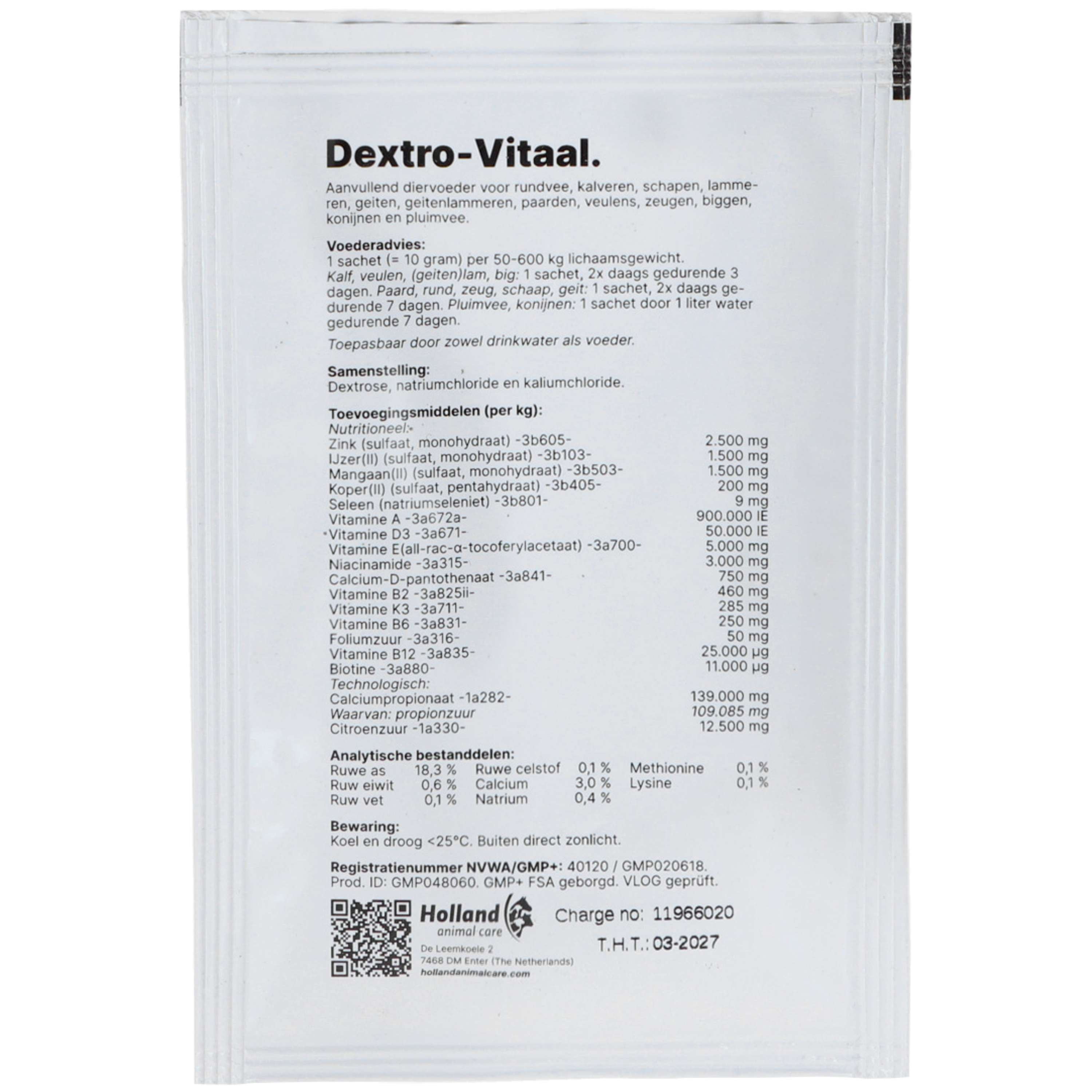 Verpackt in praktischen Beuteln für eine schnelle und präzise Verabreichung von Dextro Vitaal.