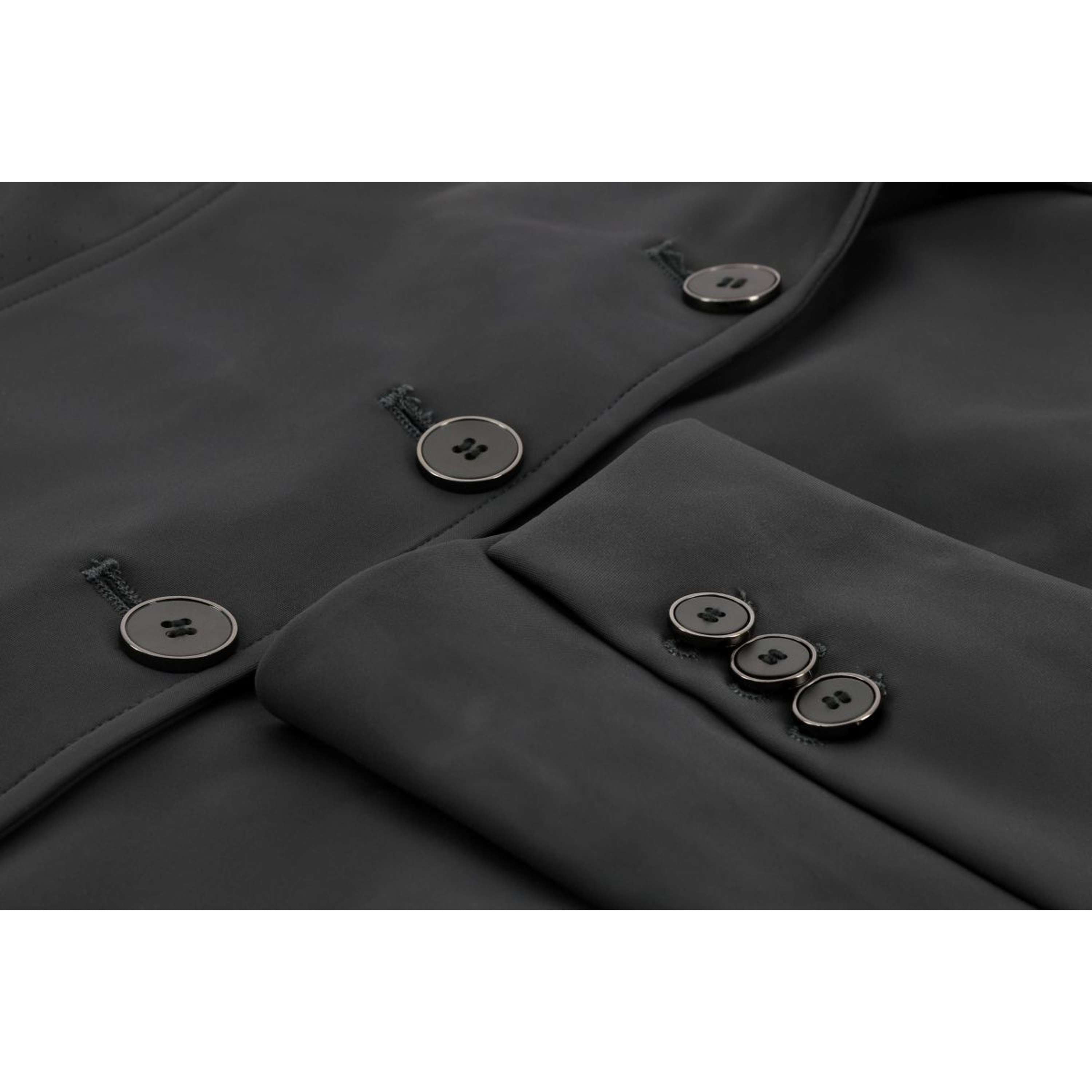 - Vorderseite mit 4 Knöpfen und doppeltem Reißverschluss unter der Knopfleiste für zusätzliche Sicherheit und Komfort.
