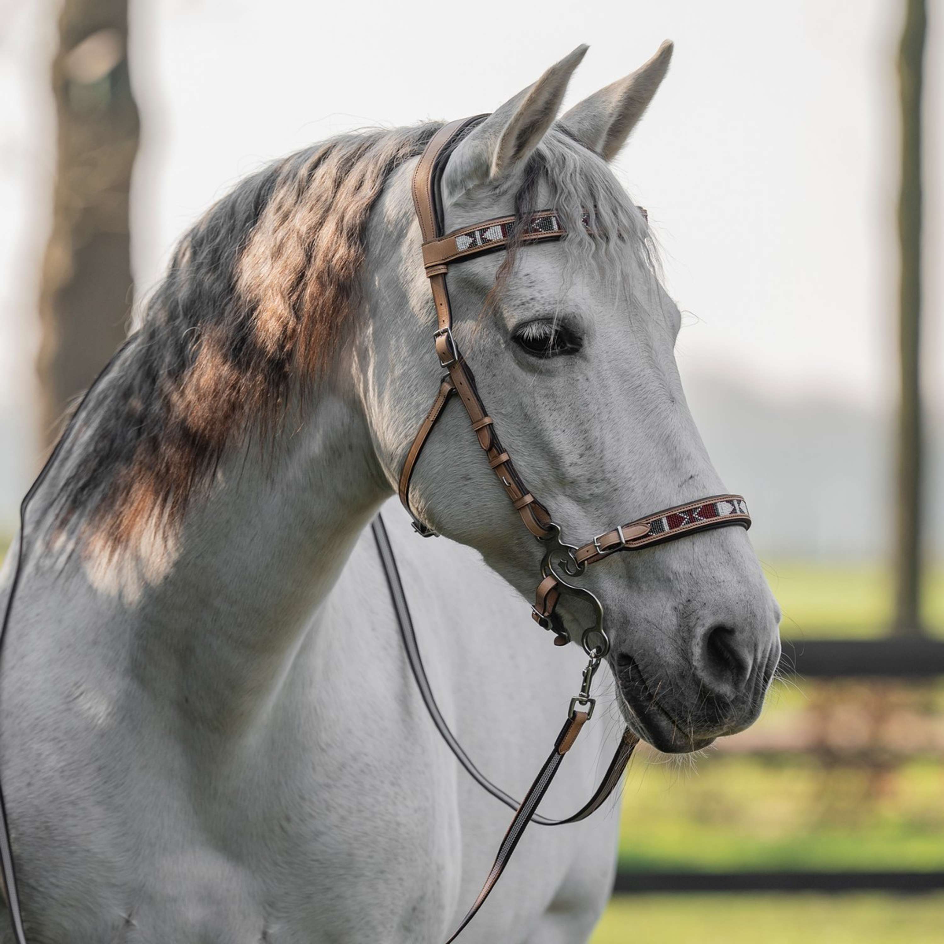 Die Trense besteht aus hochwertigen, langlebigen Materialien, die auch den härtesten Bedingungen standhalten. Perfekt für den täglichen Einsatz und lange Reitausflüge.