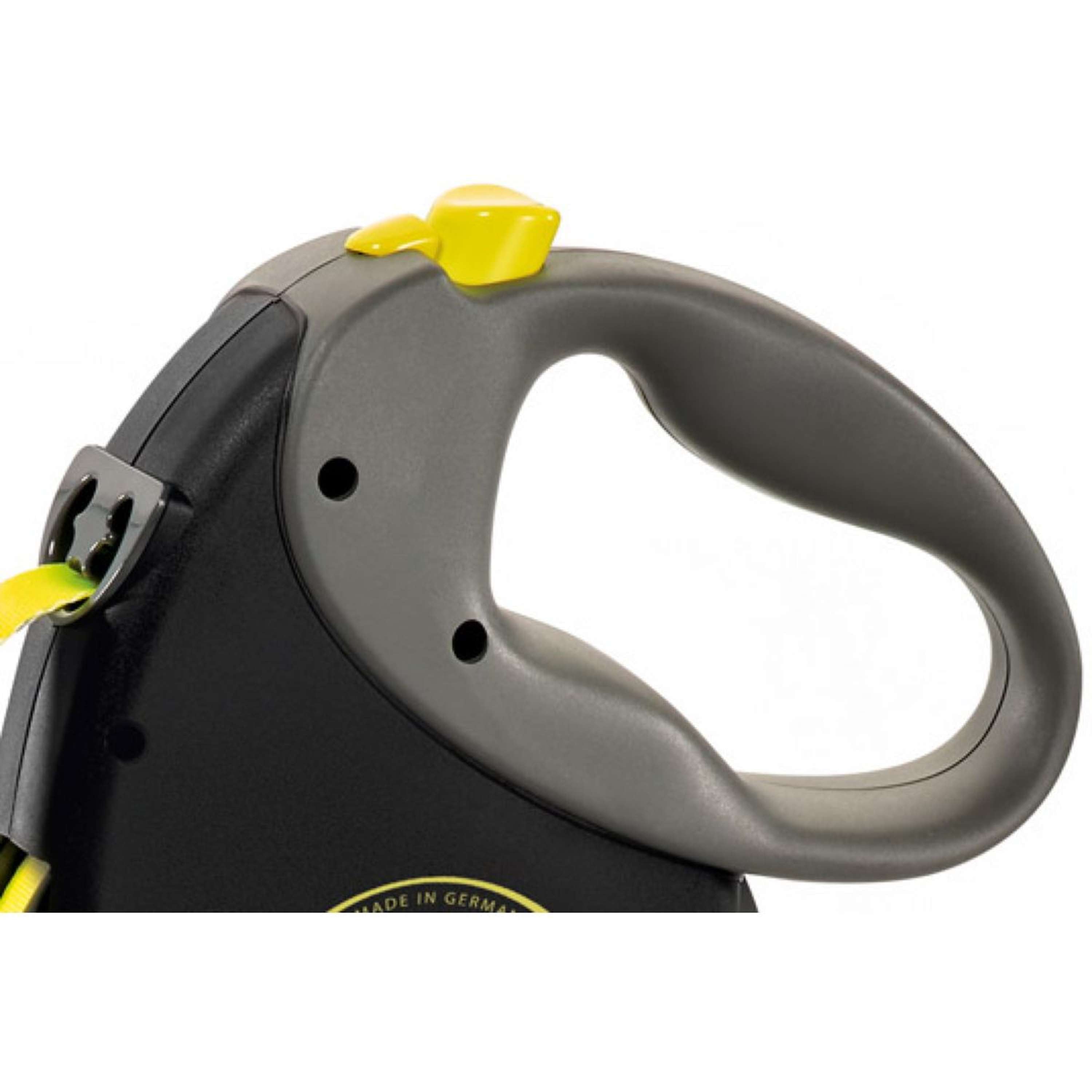 Die Flexi Giant Neon kommt mit einer 8 Meter langen Schnur in reflektierendem Gelb. Damit fällt ihr Vierbeiner im Dunkeln garantiert auf, und die Leine ist einfach zu bedienen. Die reflektierenden Elemente sorgen dafür, dass Sie und Ihr Hund gut sichtbar bleiben, egal zu welcher Tages- oder Nachtzeit.