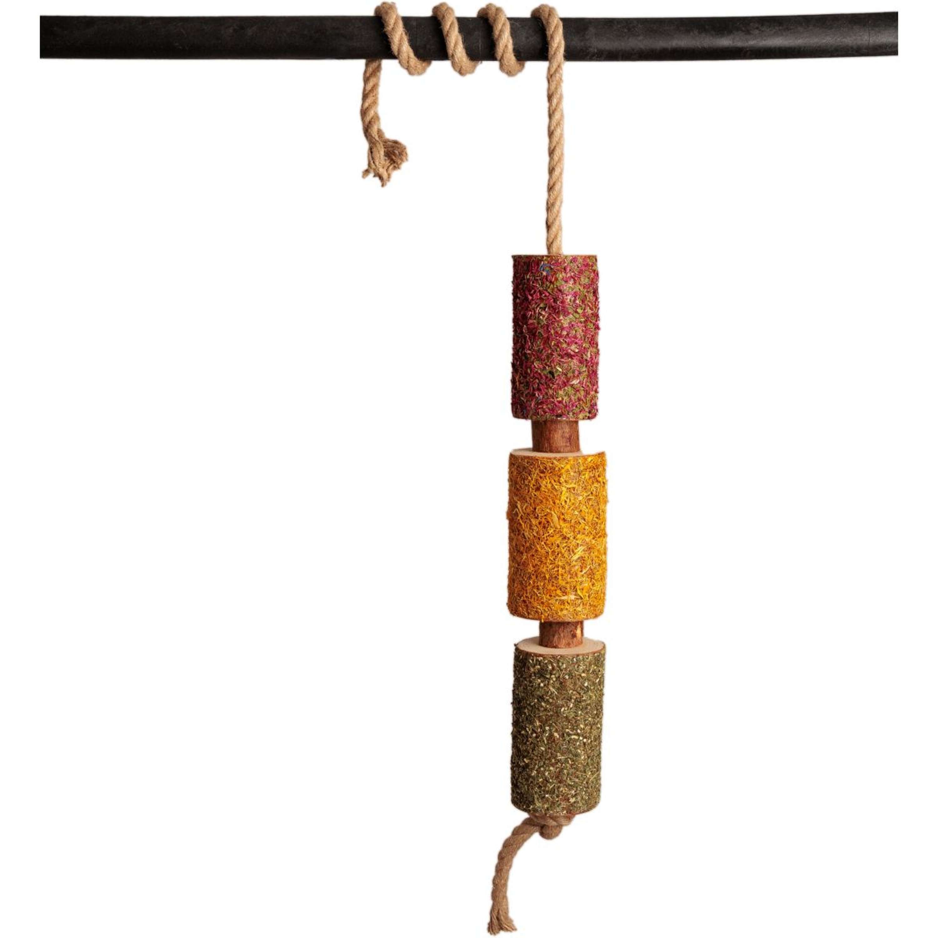 Jedes Stück Holz wird von Hand aus dem Wald ausgewählt und in seinem natürlichen Zustand belassen - ungetrocknet und unbehandelt - um die authentischen Gerüche und Texturen zu erhalten, die Pferde instinktiv reagieren Die Freedom-Version besteht aus einer einzigartigen Kräutermischung, wobei jede Farbe einen bestimmten pflanzlichen Nutzen darstellt: