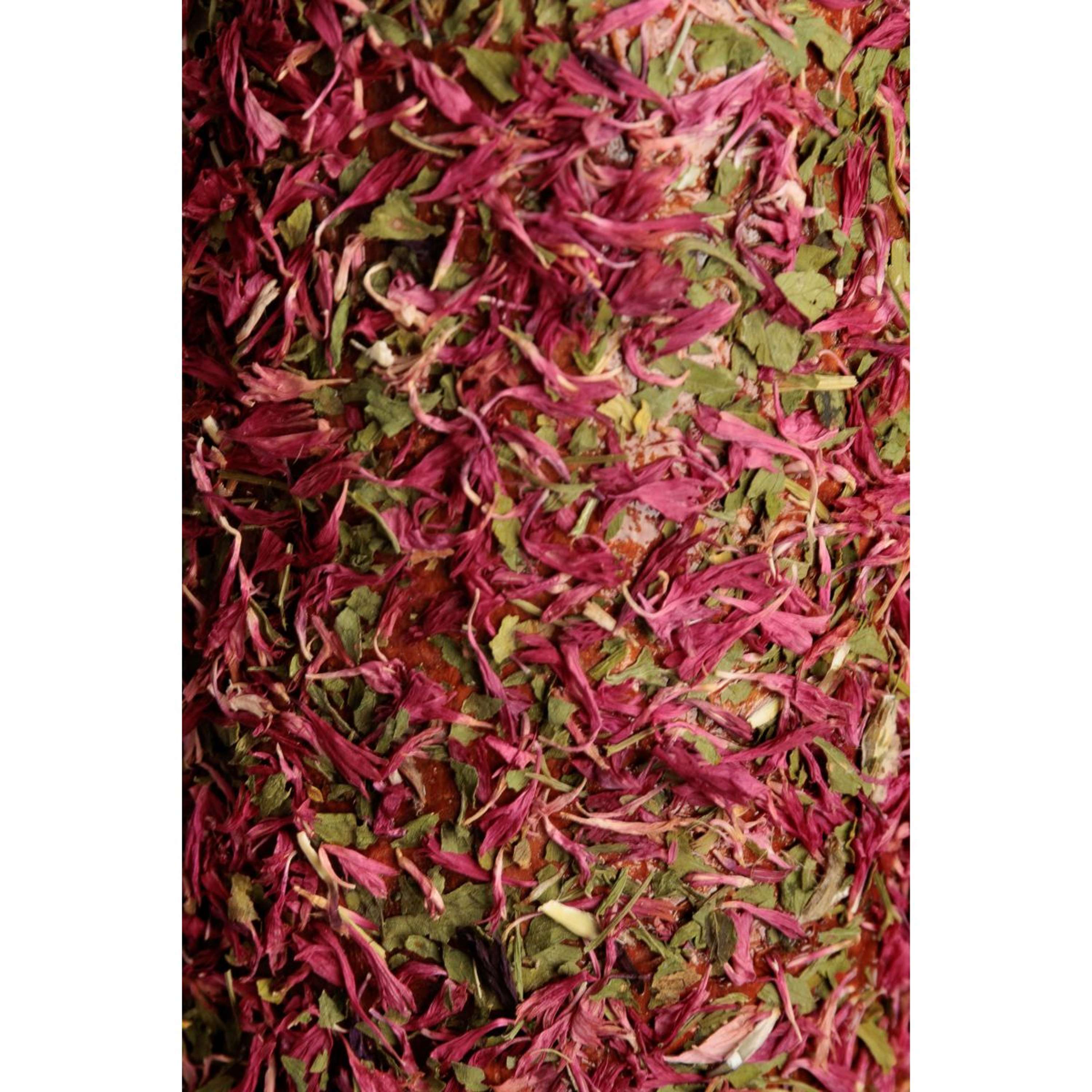 – Die Rot- und Rosatöne enthalten wilde Rosenblätter, eine natürliche Quelle für Antioxidantien – insbesondere Vitamin C – mit verdauungsfördernden und entzündungshemmenden Eigenschaften und einem natürlich ansprechenden Aroma.