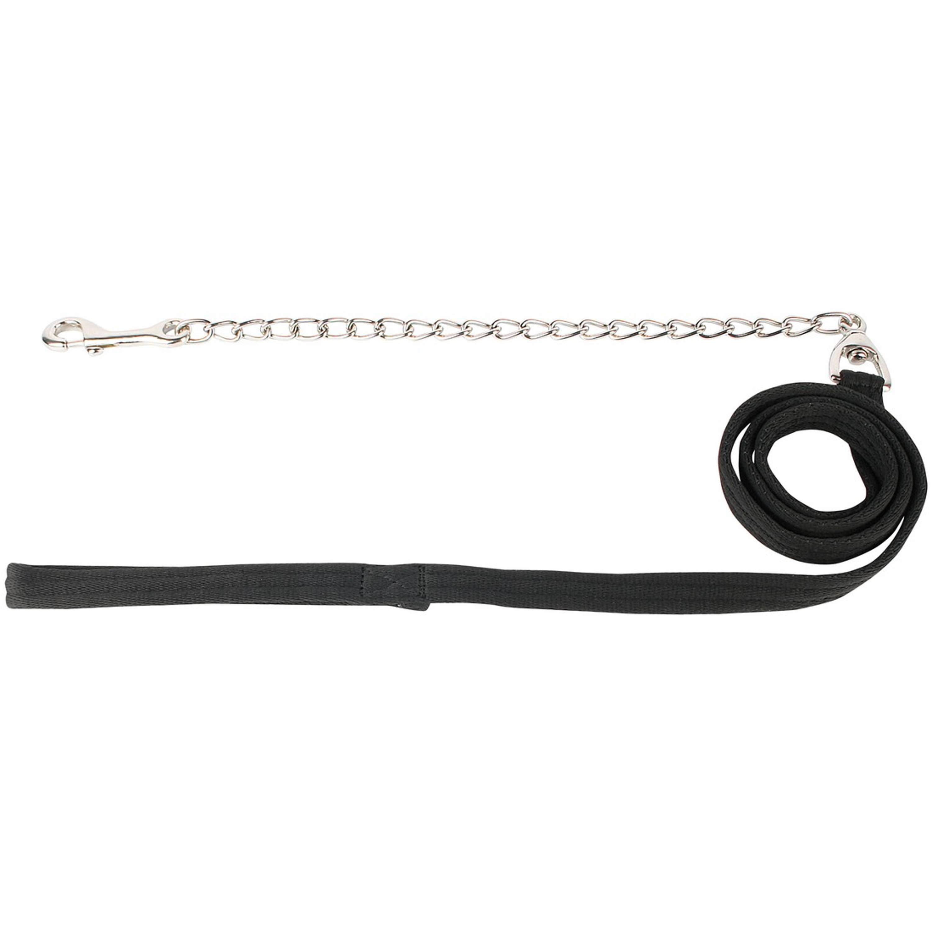Flacher, weicher Führstrick mit silberfarbener Kette und Karabiner. Länge: Gesamtlänge 200 cm, Kette 50 cm.Material: Polyester (Strick), Stahl (Kette).