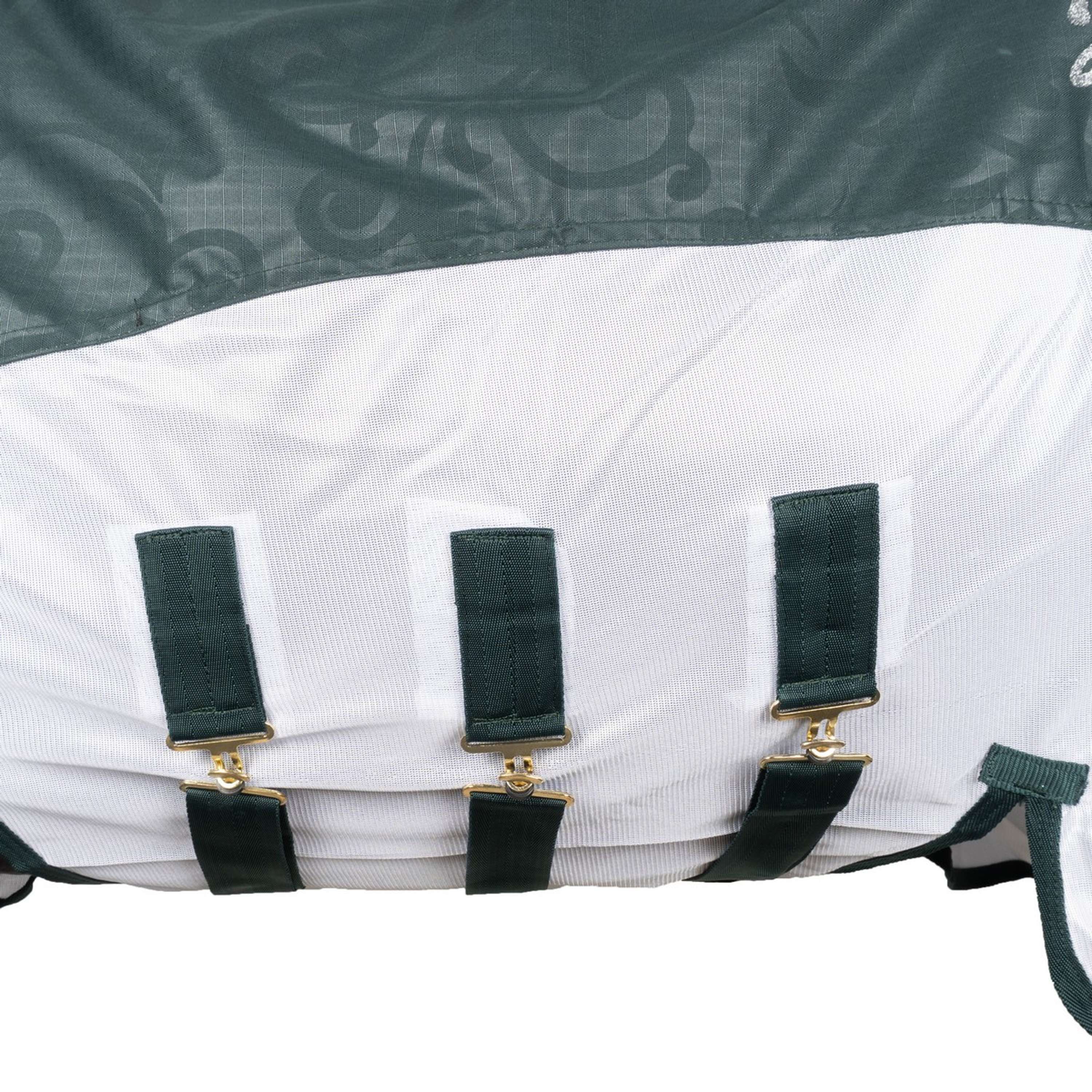 Die Decke vereint die Funktionen von Fliegen- und Regenschutz, sodass dein Pferd bei jedem Wetter optimal geschützt ist. Keinen lästigen Mücken und keine unbequeme Regenbeschwerden mehr!