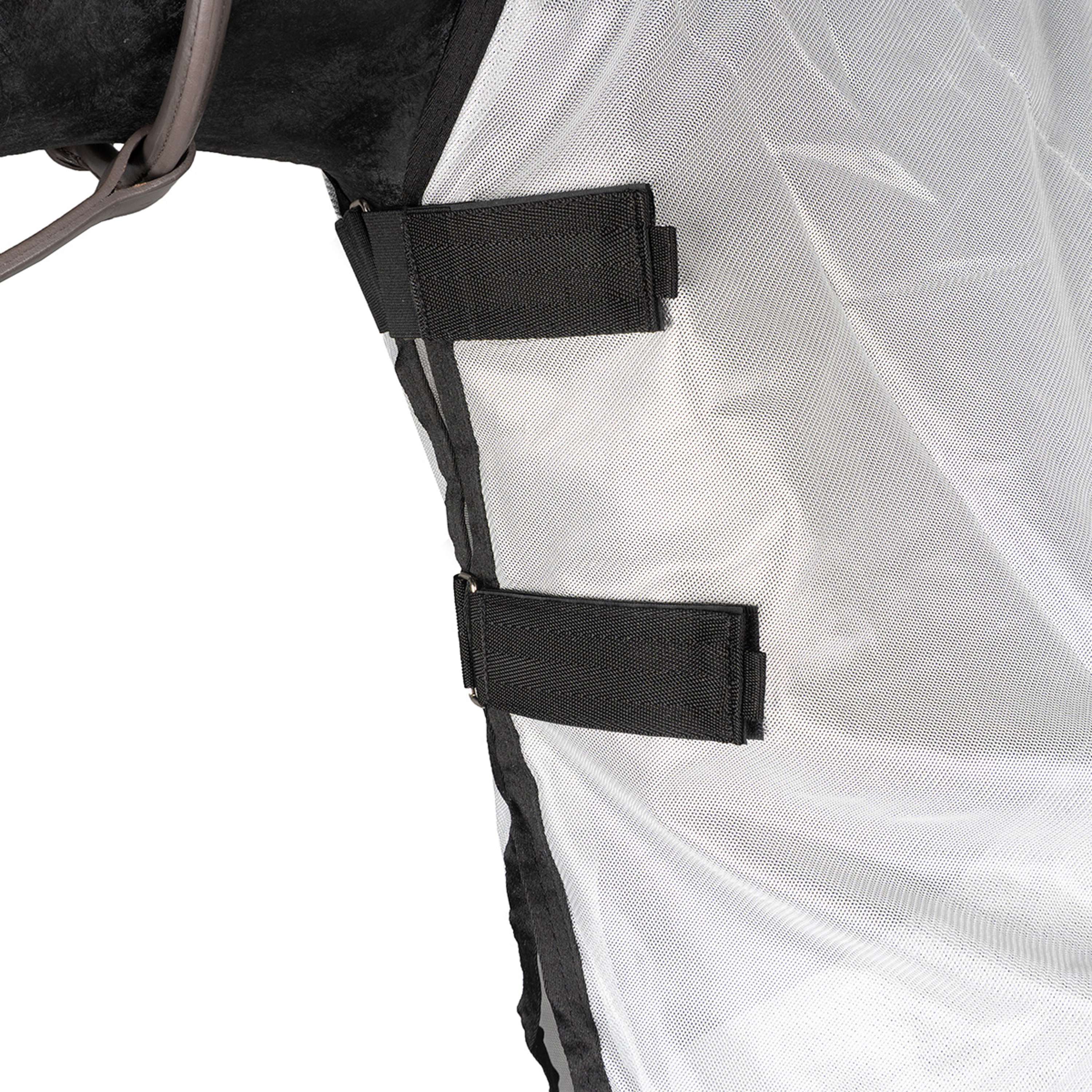 Die Fliegendecke besteht aus strapazierfähigem Material, das die Haut deines Pferdes schont und gleichzeitig für gute Luftzirkulation sorgt. Dein Pferd bleibt angenehm kühl, auch wenn die Temperaturen steigen.