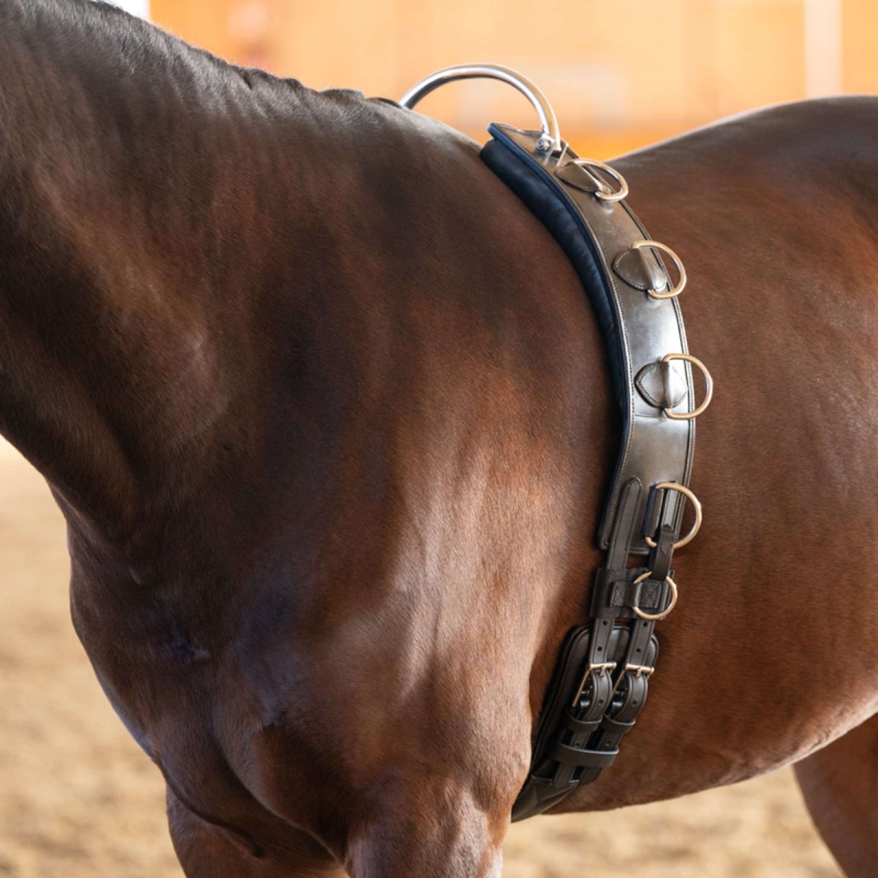 Der Longiergurt ist mit weicher Polsterung ausgestattet, die Druckstellen verhindert und für maximalen Komfort sorgt. Gleichzeitig garantiert der hochwertige Rahmen stabilen Halt und gleichmäßige Druckverteilung – ideal für längere Trainingseinheiten.
