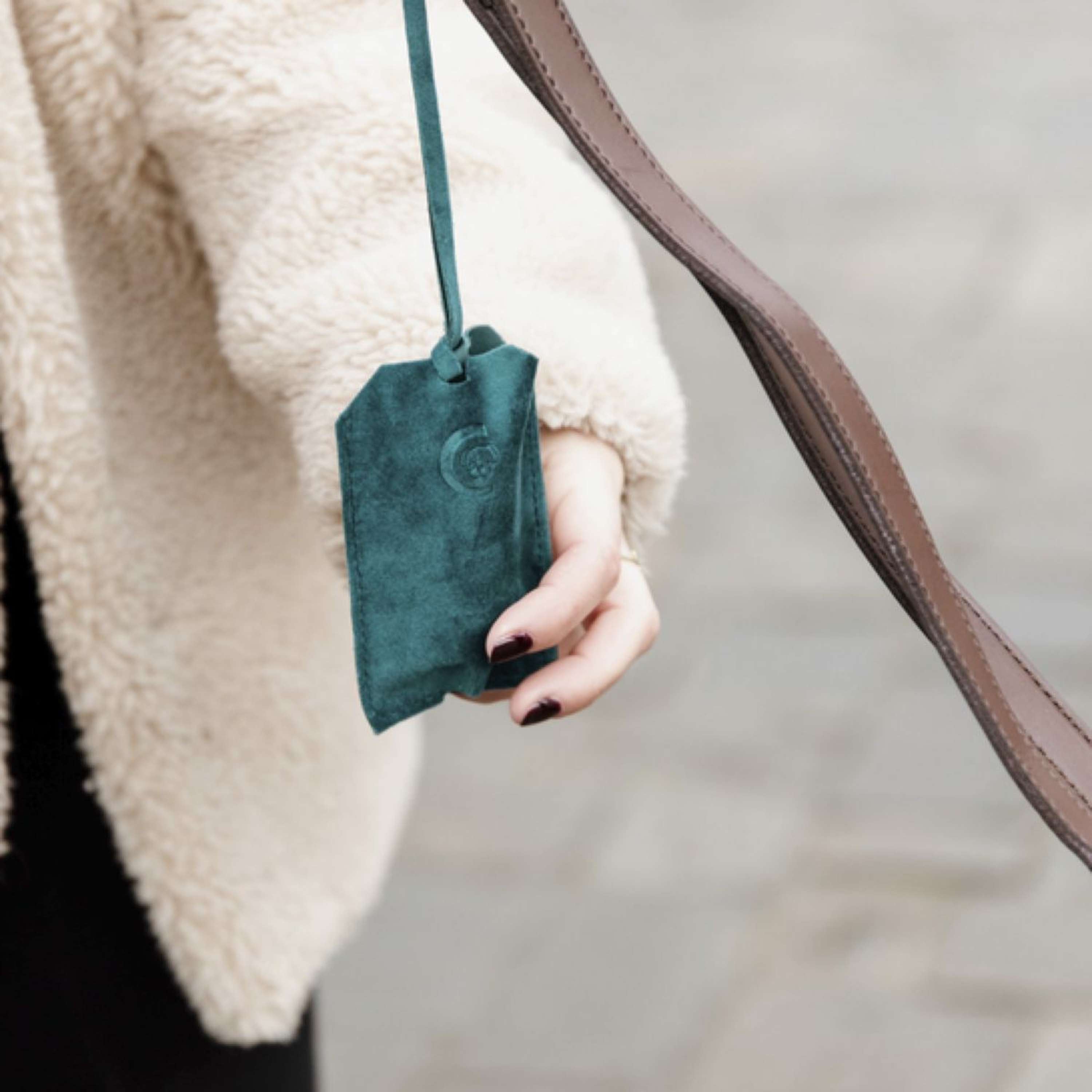 Der Spender aus weichem Samtstoff lässt sich einfach an die Leine oder deinen Gürtel hängen. Dank der Kordel hast du ihn immer griffbereit, egal ob beim Spaziergang oder Wandern.