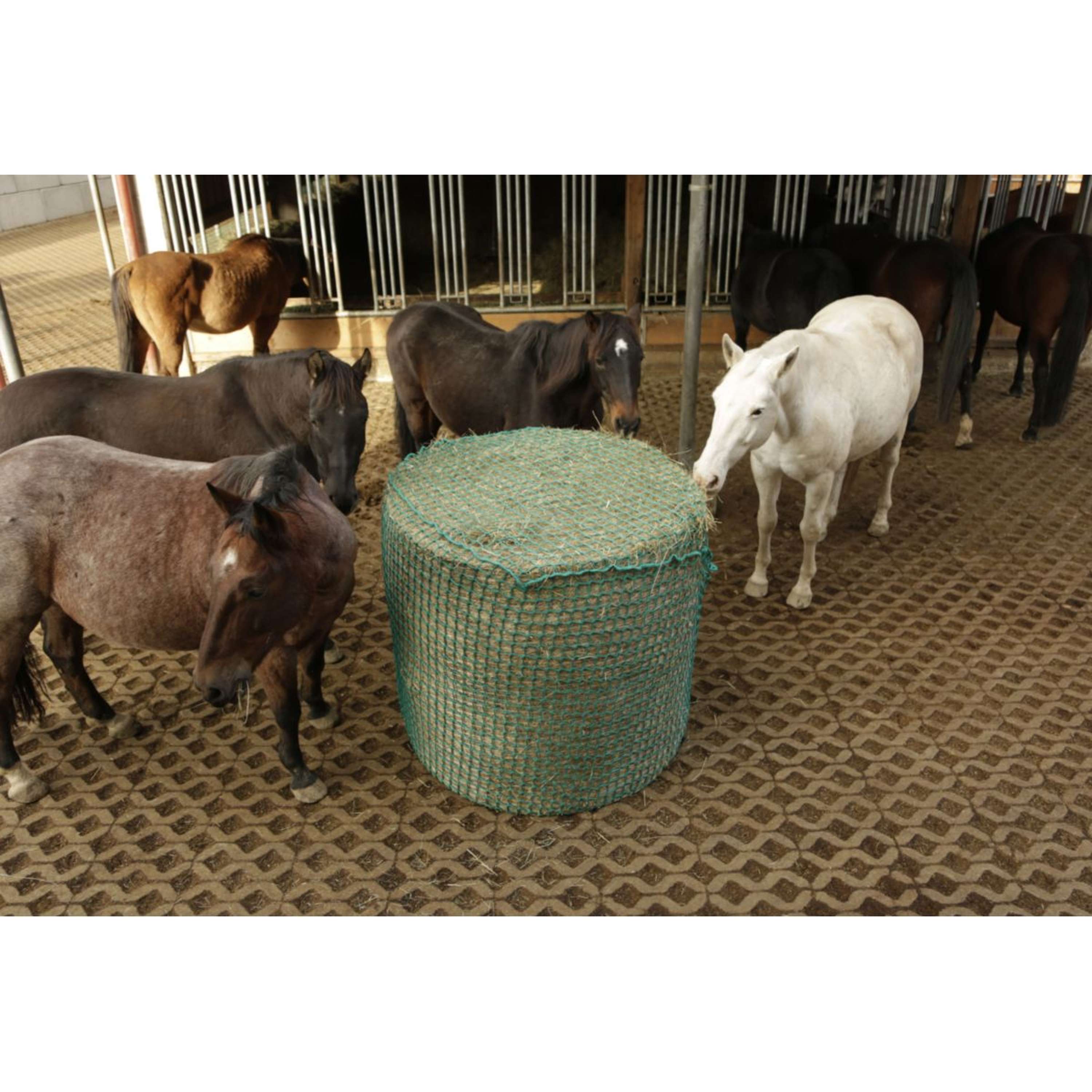 Ob im Stall oder auf der Weide, dieses Heunetz ist universell einsetzbar. Es eignet sich jedoch nicht für Pferde mit Hufeisen, da die Gefahr des Verfangens besteht.
