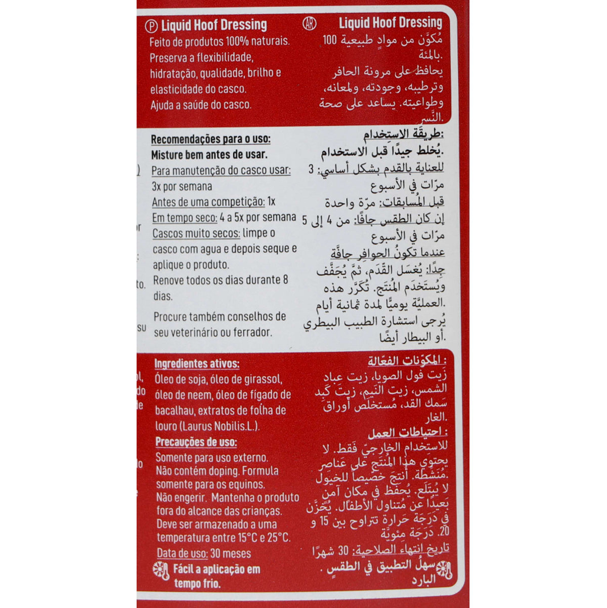 - Für die Pflege gesunder Hufe: zweimal wöchentlich anwenden.