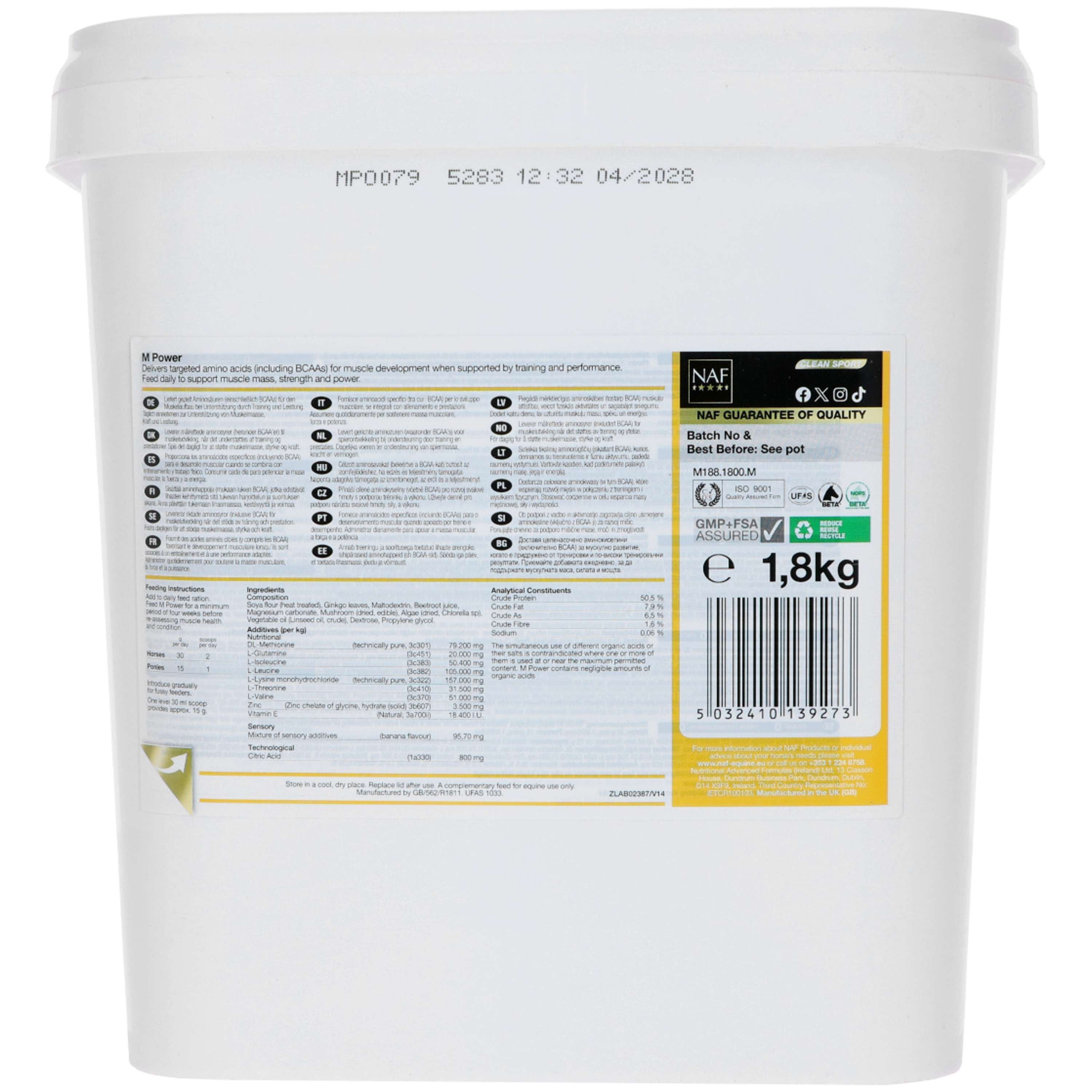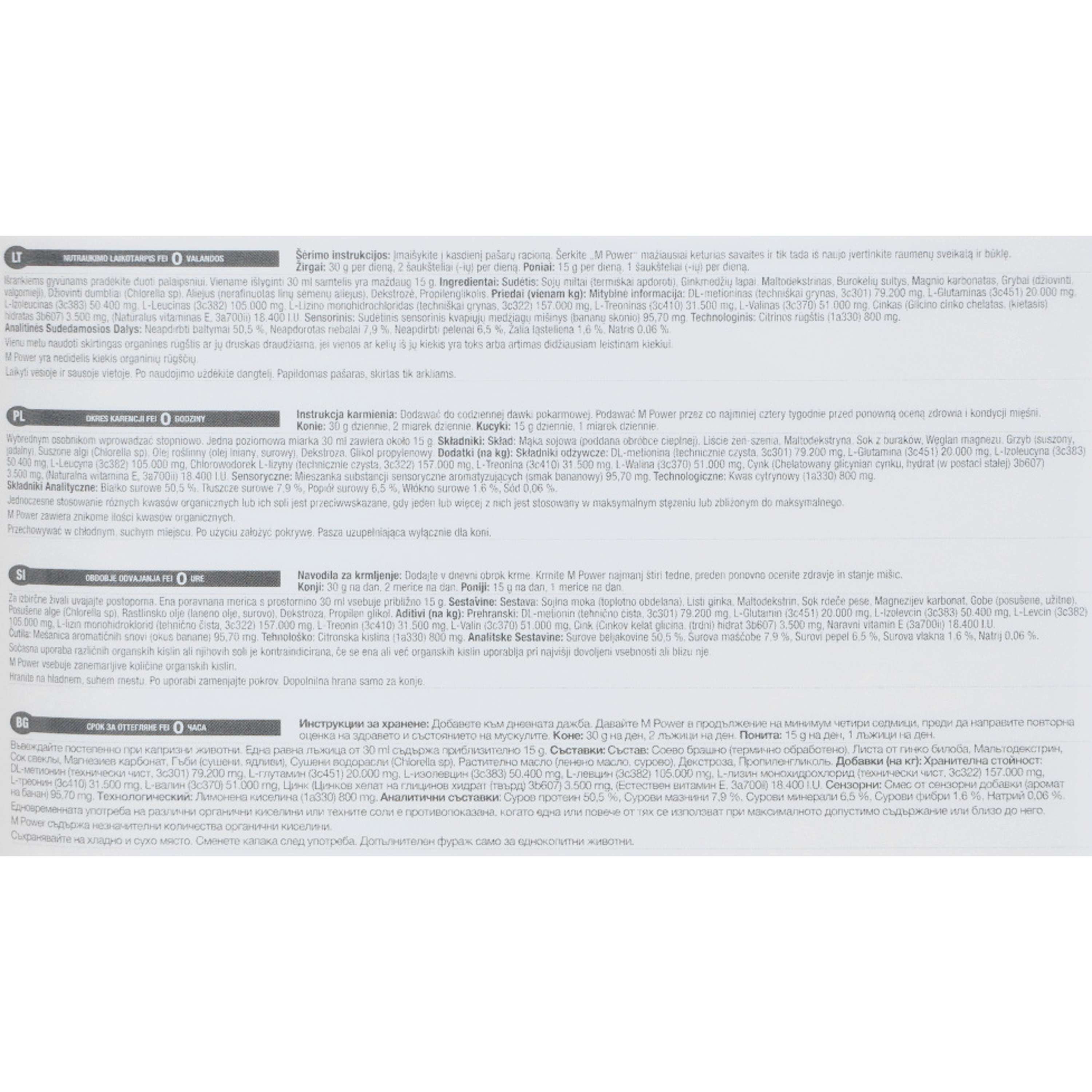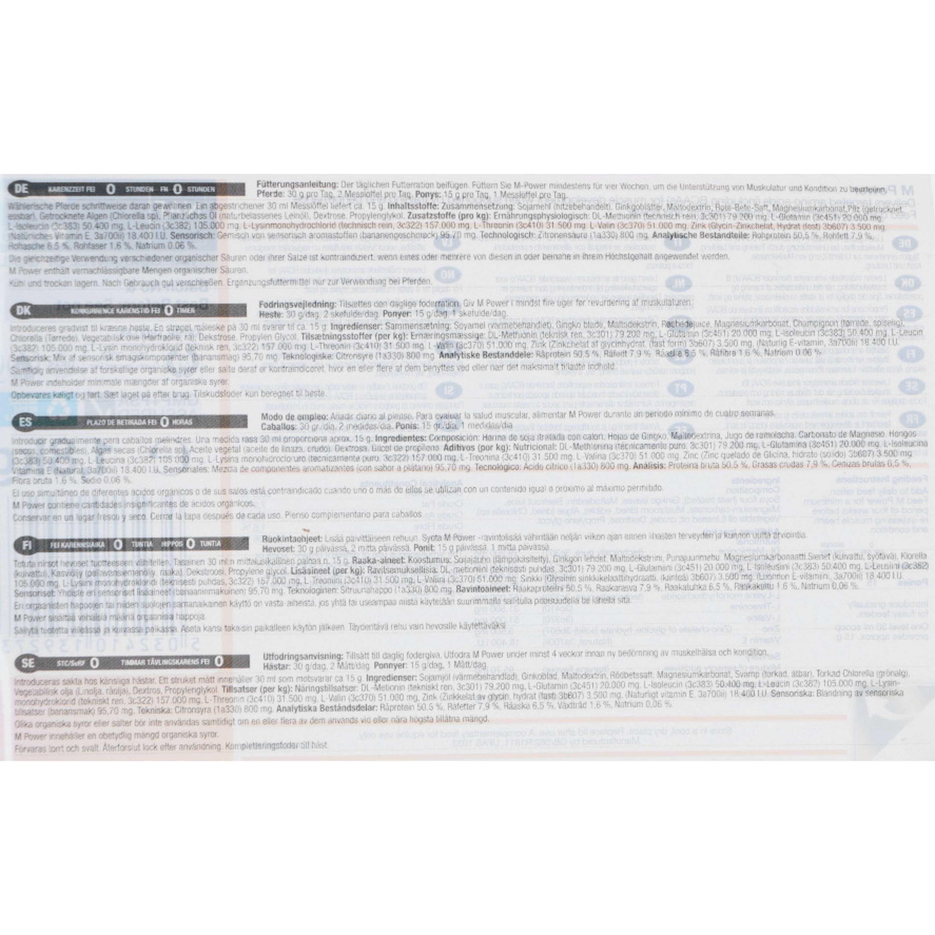 Neben Aminosäuren versorgt M Power dein Pferd auch mit Vitaminen und Spurenelementen, die für die Leistungsfähigkeit notwendig sind. Lebendhefe optimiert zusätzlich die Verdauung, sodass die Nährstoffe besser aufgenommen werden.