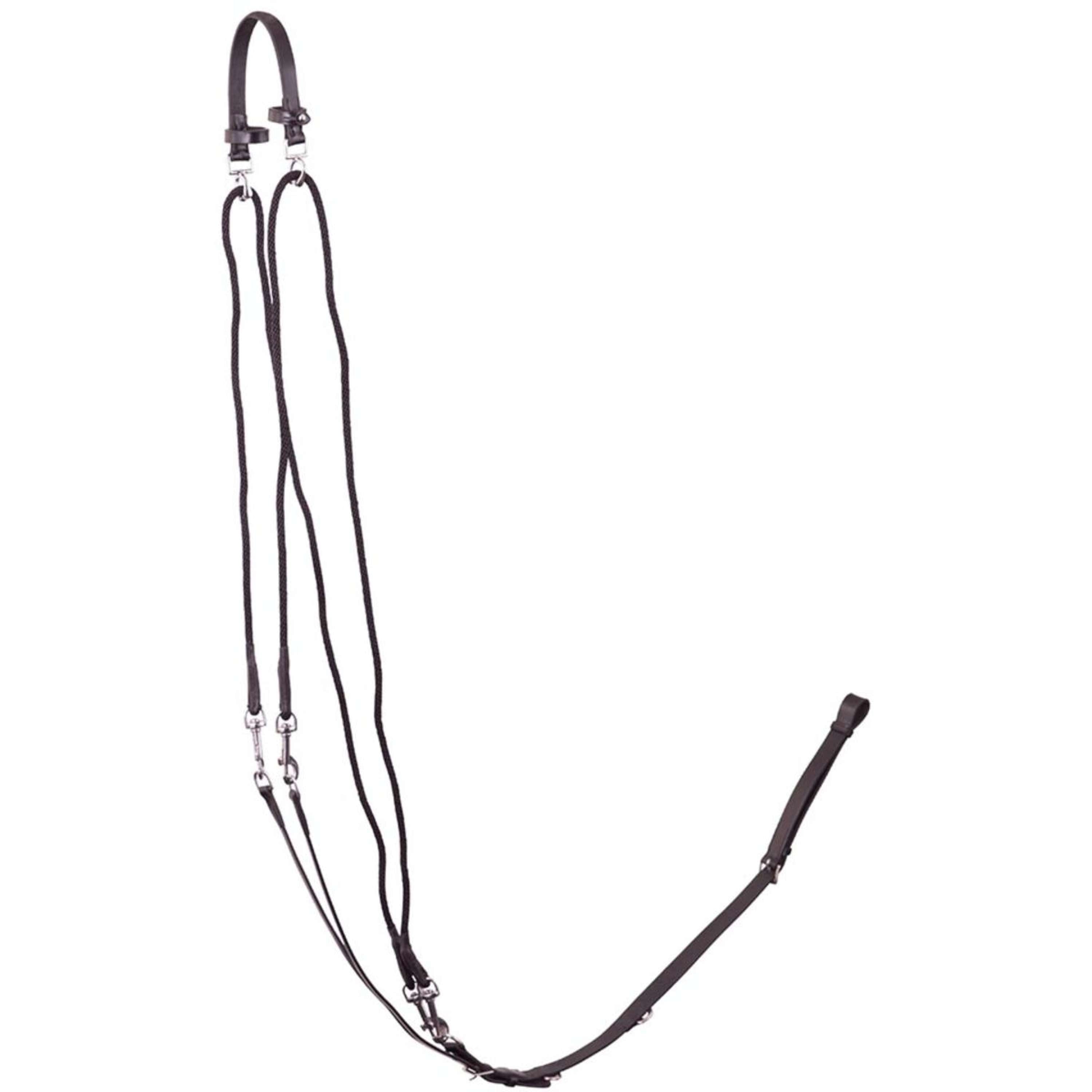 Das Leder-Gogue ist einfach zu handhaben. Die weichen Nylonseile werden mit Wirbelkarabinern befestigt und lassen sich problemlos einstellen. Dies ermöglicht eine präzise Kontrolle, ohne das Pferd zu stressen.