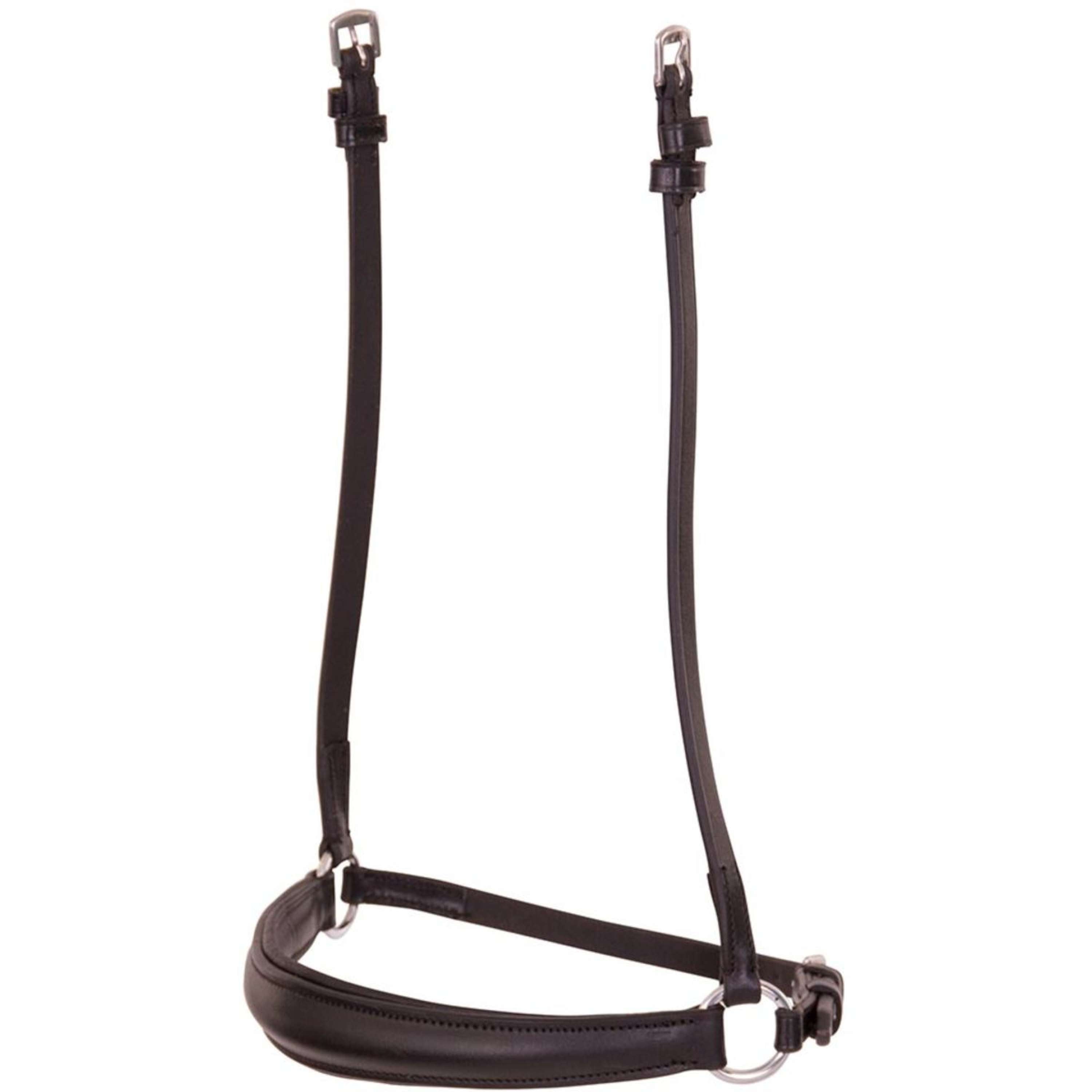 Die Backenstücke sind mit robusten Edelstahlschnallen ausgestattet, die für eine sichere Befestigung sorgen. Ebenso befinden sich Edelstahlringe an den Seiten des Nasenriemens, die für zusätzliche Stabilität und Haltbarkeit sorgen.