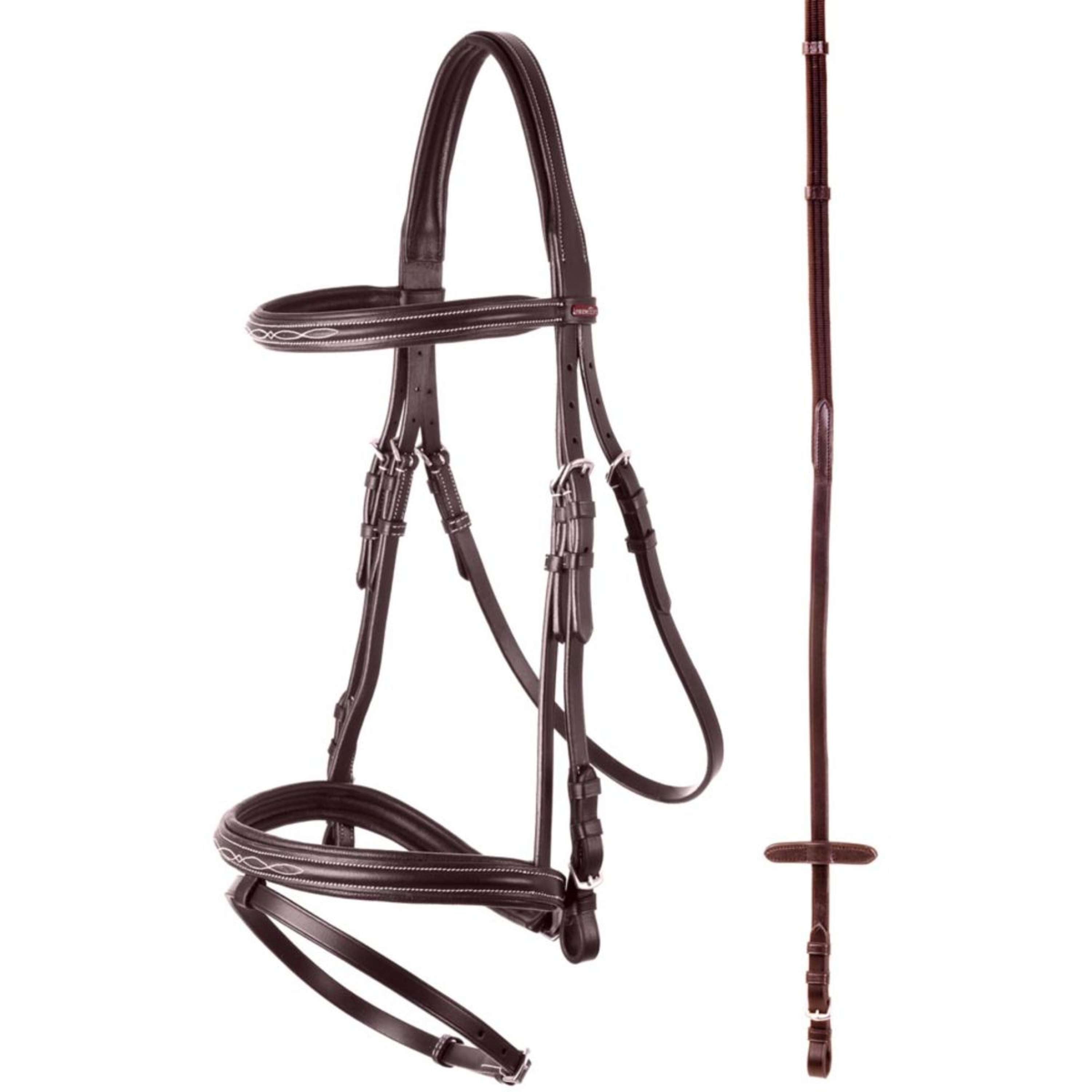 Mit dem Premiere Trensenzaum Nancy Braun reitest du stilvoll und komfortabel. Dieser Trensenzaum ist symmetrisch und verfügt über ein anatomisch geformtes, weich unterlegtes Genickstück, das für zusätzlichen Komfort an den Ohren zurückgeschnitten ist.