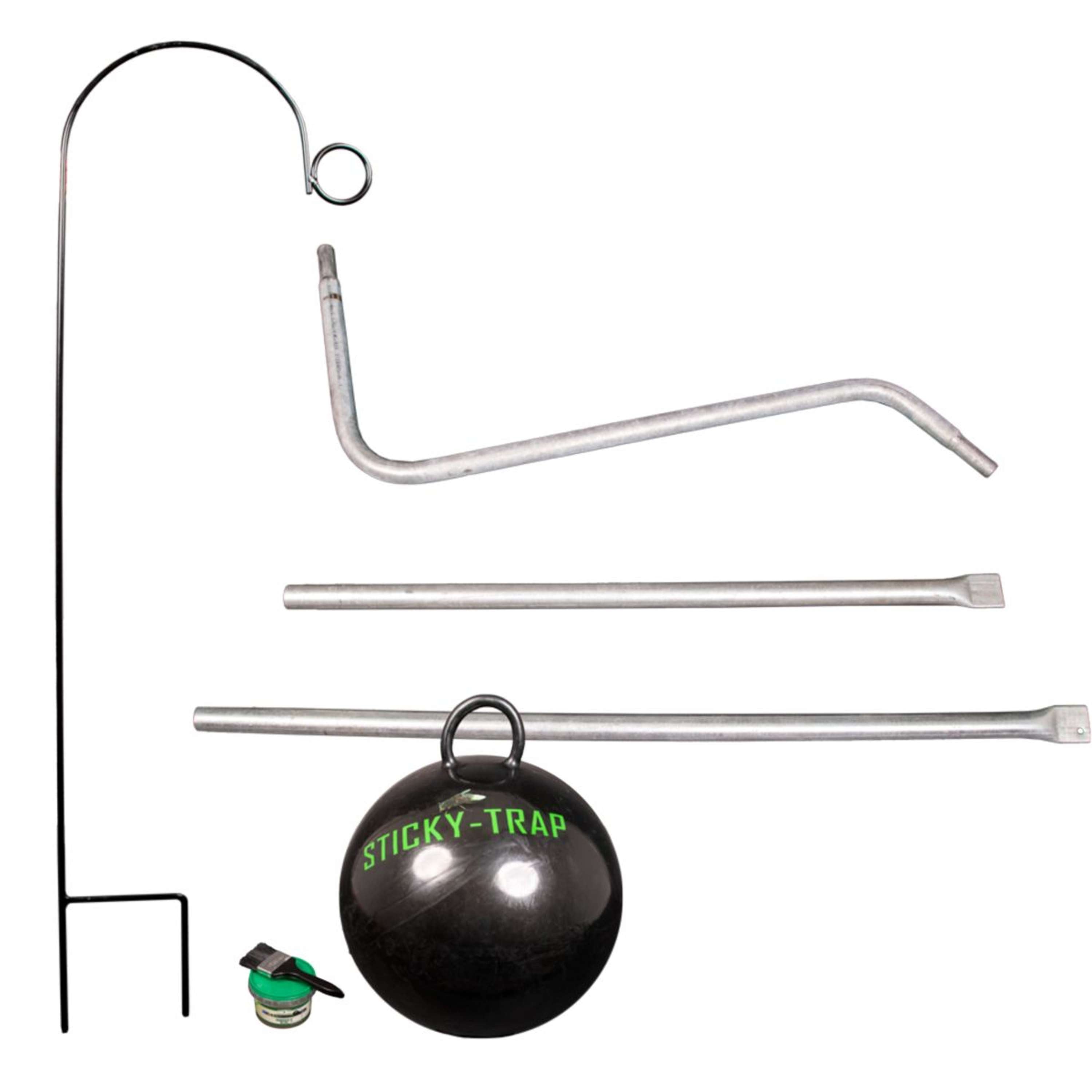 In der Box findest du alles, was du brauchst: den stabilen LOER Ständer, einen 60 cm großen Sticky Trap Ball, eine 70 cm lange Kette mit D-Verschluss und 1,5 Liter Bremsen-Klebstoff samt Pinsel für die einfache Anwendung.