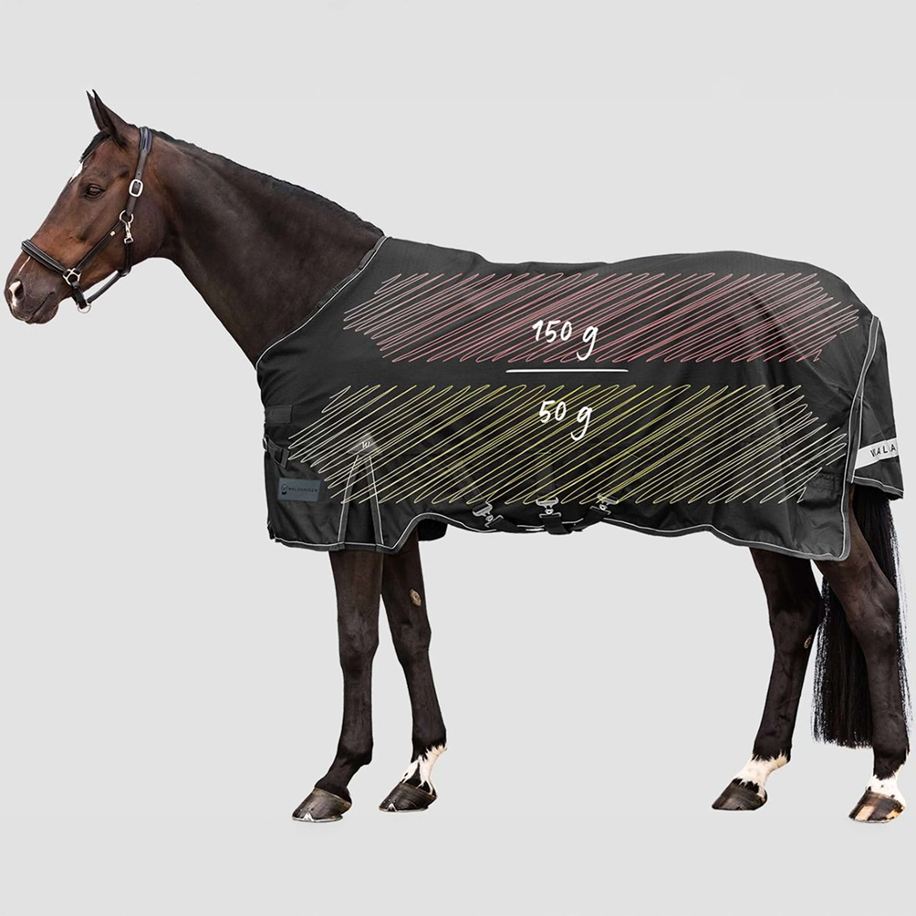 Dank der unterschiedlichen Füllung (Multi-Layer) bietet die Decke optimalen Schutz: Am Rücken ist sie stärker gefüttert als an den Seiten, da Pferde über den Rücken die meiste Wärme verlieren. So ist der empfindliche Rückenbereich perfekt geschützt, während die leichtere Füllung an den Seiten für weniger Gewicht und eine angenehme Passform sorgt.