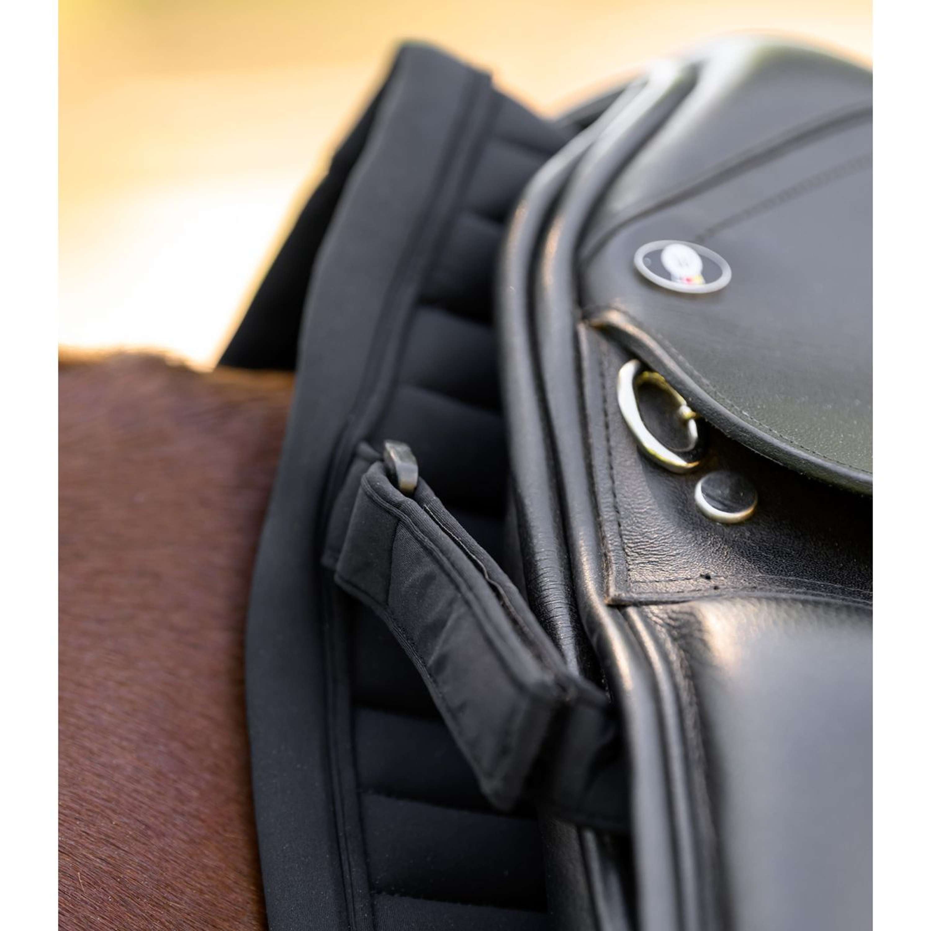 Die Schabracke Trinidad überzeugt mit atmungsaktivem Softshellmaterial für optimale Luftzirkulation. Quersteppung, tonales Piping in der soften Einfassung und ein silbernes Metallplättchen runden das Design ab. Die Gurtschlaufe mit drei Fixierungspunkten sorgt für sicheren Halt, abnehmbare Klettschlaufen ermöglichen eine einfache Handhabung.