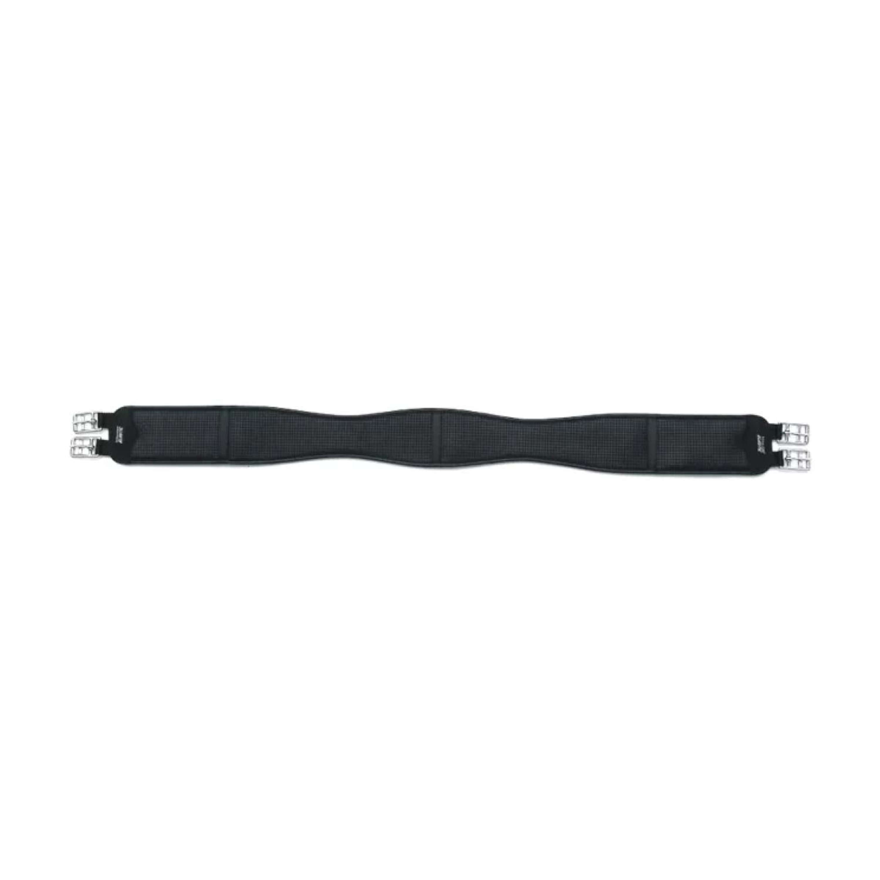 Kombinierter Gurt mit elastischem Kern, überzogen mit synthetischem Material mit Wabenstruktur. Rollschnallen aus Edelstahl. Vereint alle Vorteile des elastischen Gurtes mit einer gebogenen Form, die die Breite des Materials hinter den Ellbogen des Pferdes reduziert, um ein Einklemmen der Haut zu verhindern.